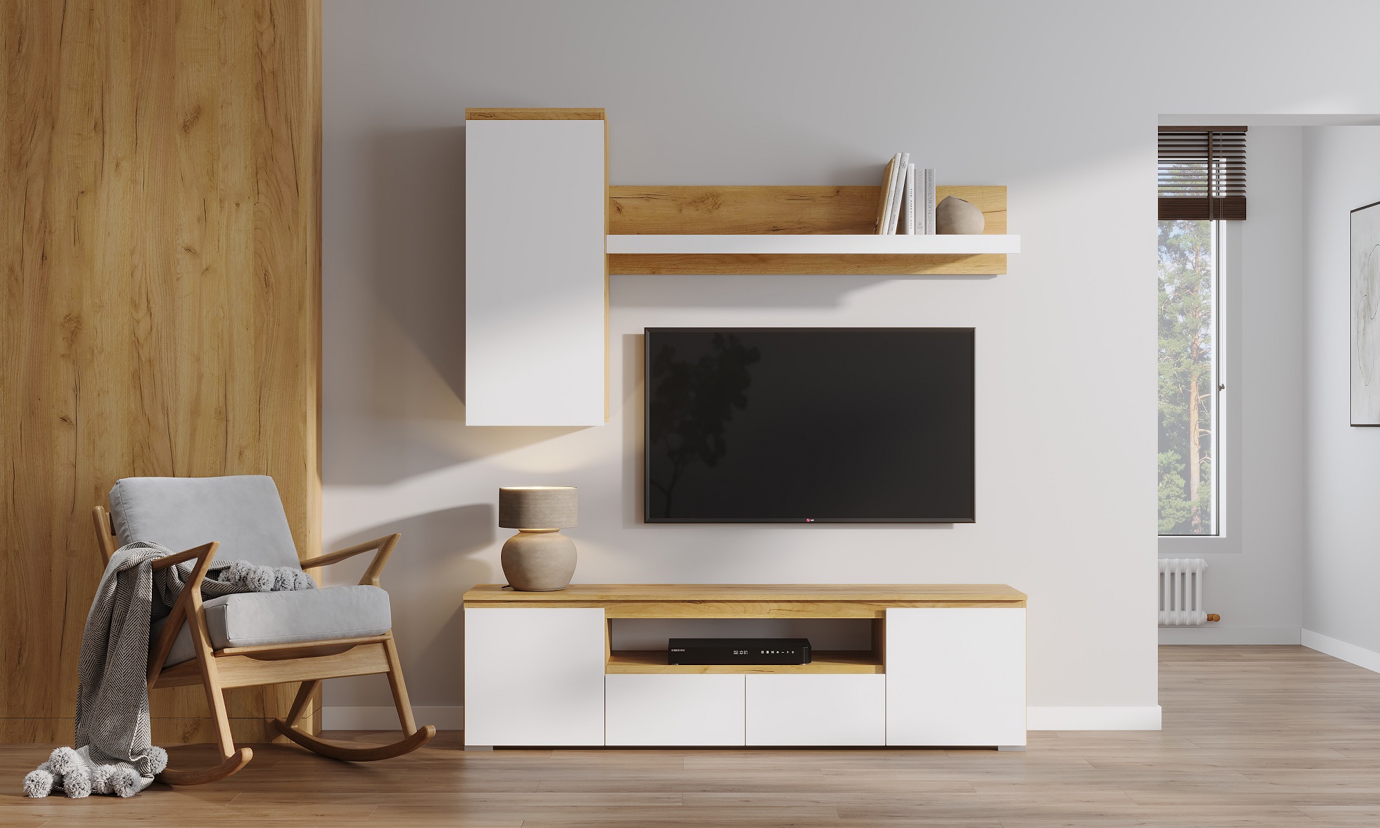- Габариты: ширина 1350 мм, что позволяет разместить книги, декоративные элементы или другие аксессуары.