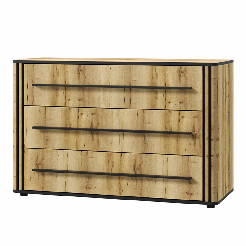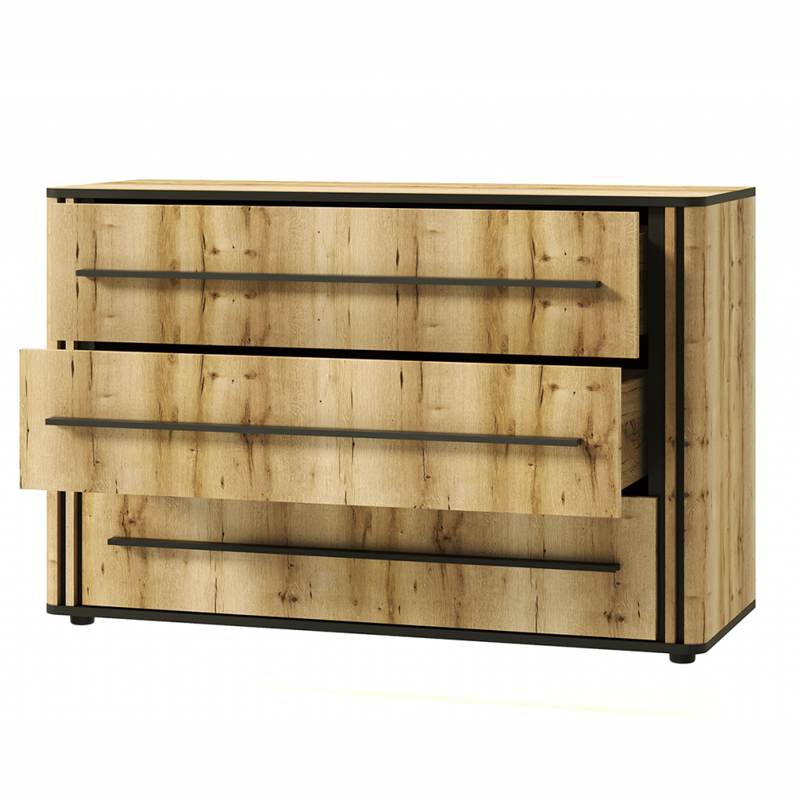 • Вместительное хранение: Комод оснащен тремя выдвижными ящиками, предлагая достаточно места для хранения одежды, белья, аксессуаров и других личных вещей.