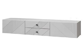 • Особенности: Навесная конструкция, два выдвижных ящика и две дверцы для удобного хранения. Современный геометрический дизайн фасадов.