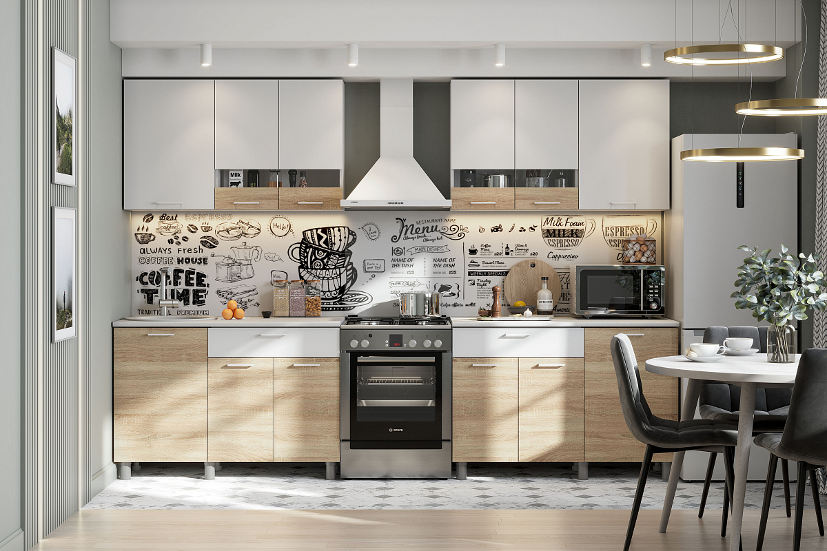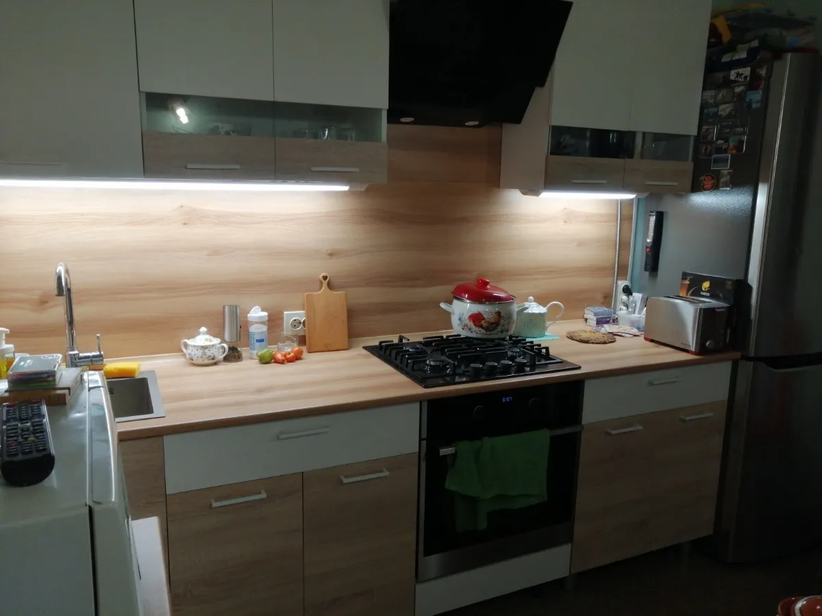 В стоимость не входит мойка, смеситель, посудосушитель. Для безударного закрывания распашных створок их можно укомплектовать накладными демпферами. Гарнитур собирается на любую сторону. Максимально допустимая нагрузка на ящик и полки - 5 кг.