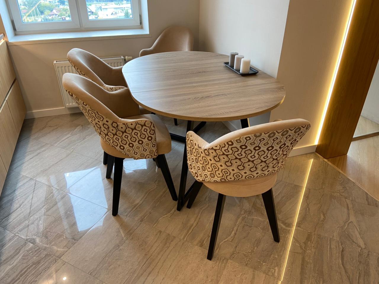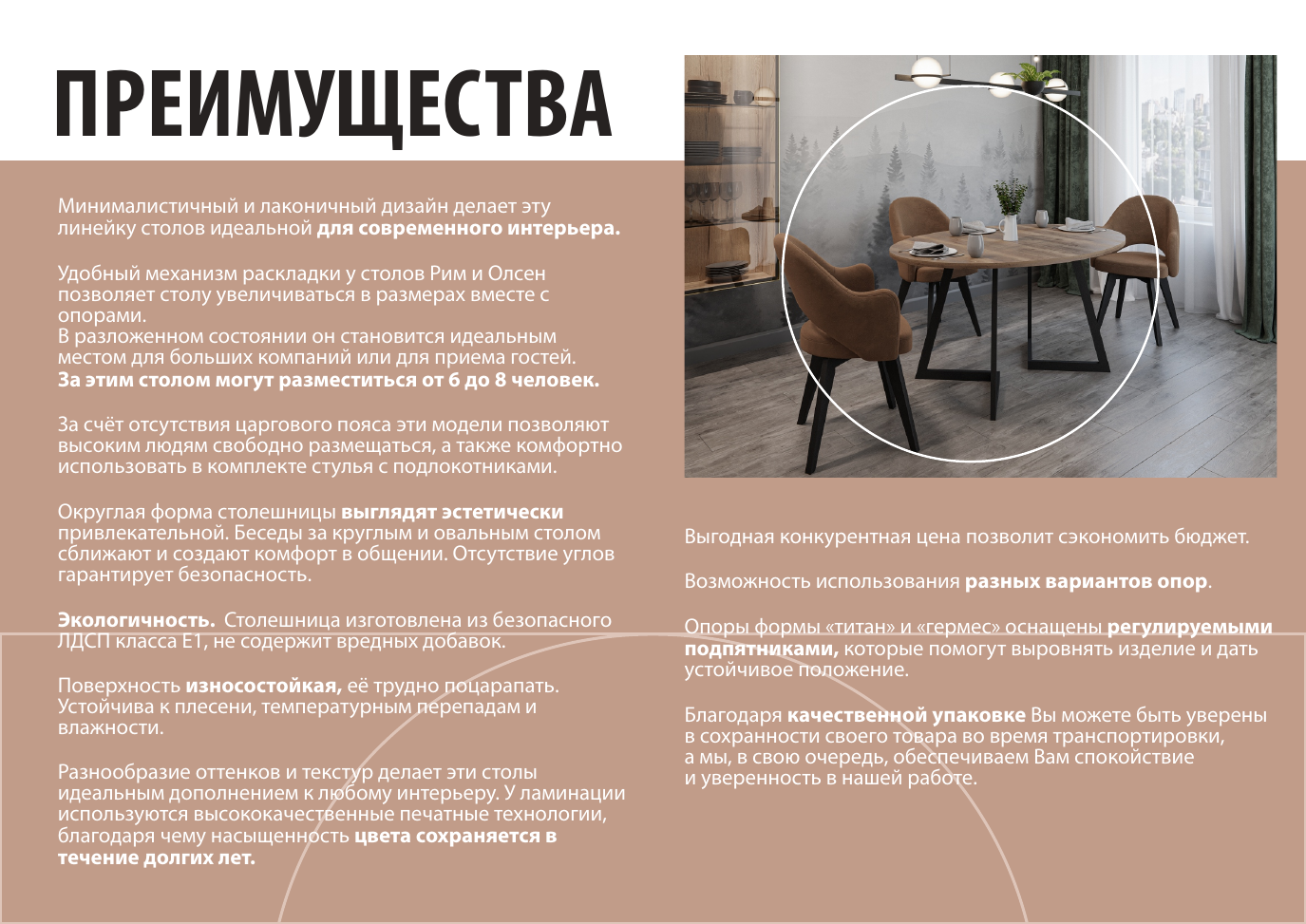 Стол "Рим" станет отличным выбором для современной кухни или столовой, обеспечивая комфортное размещение для семьи и гостей.