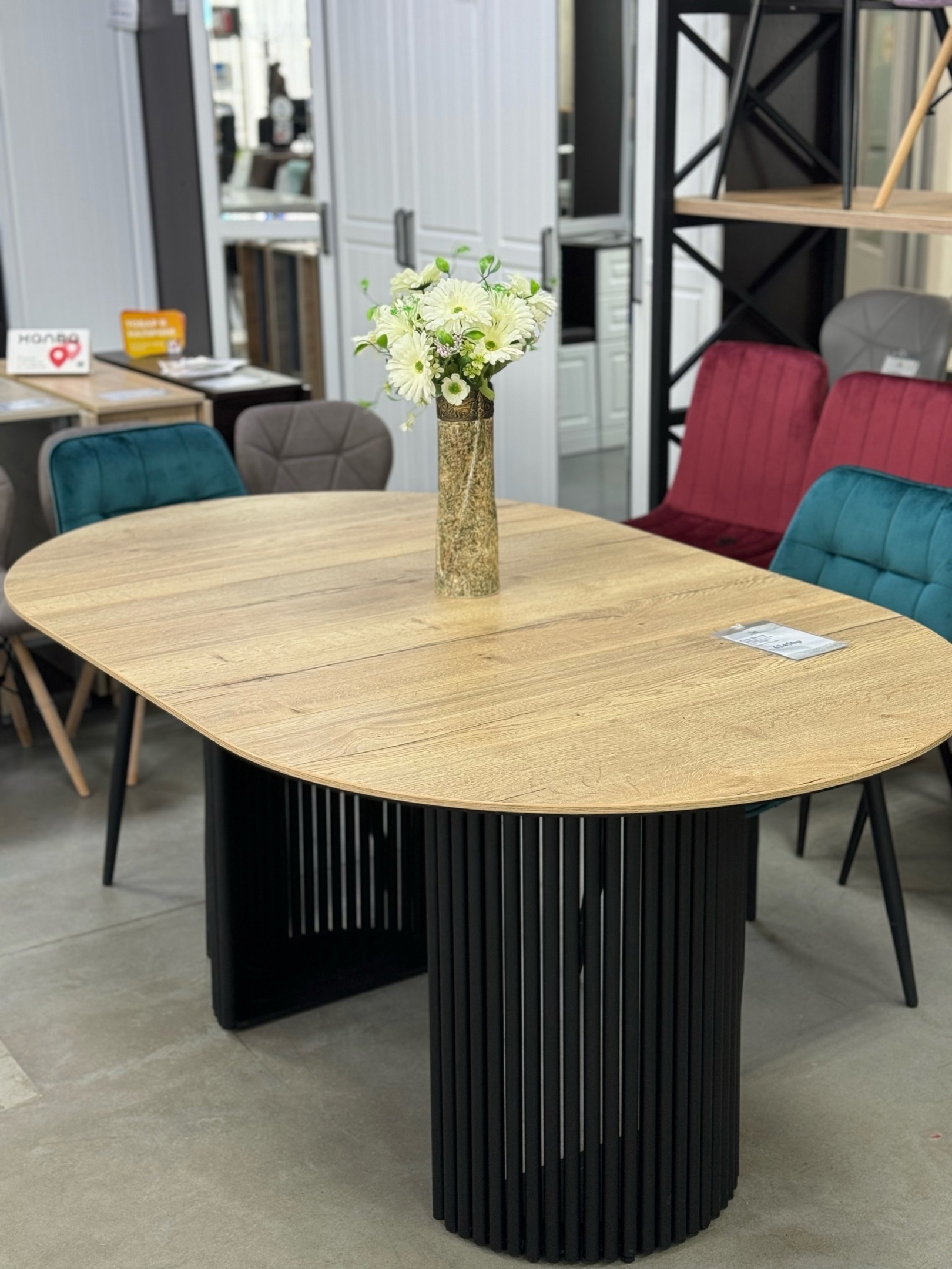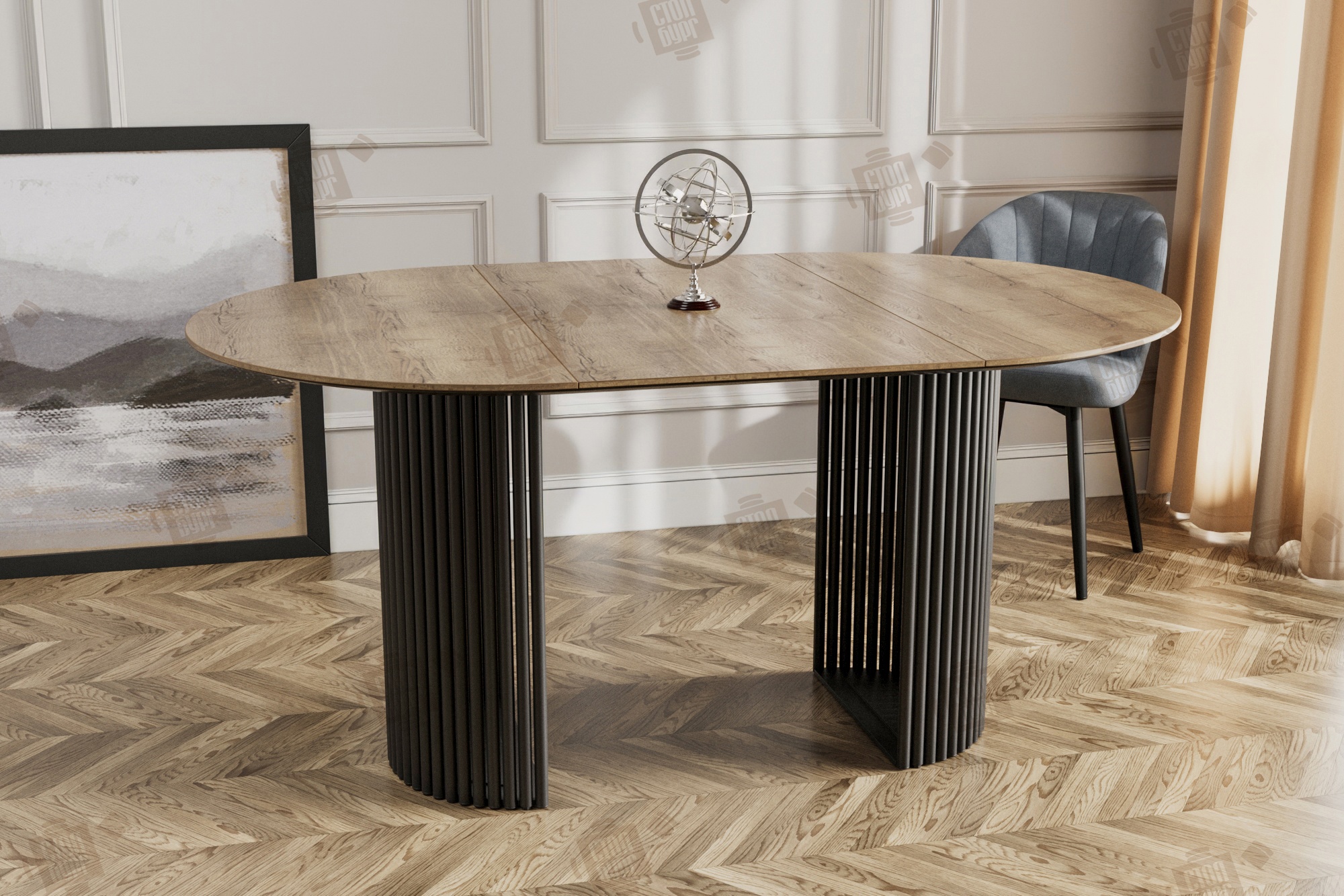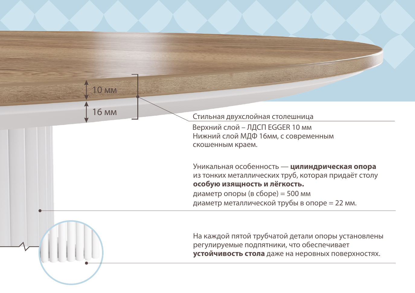 • Овальная столешница с уникальным двухслойным дизайном.