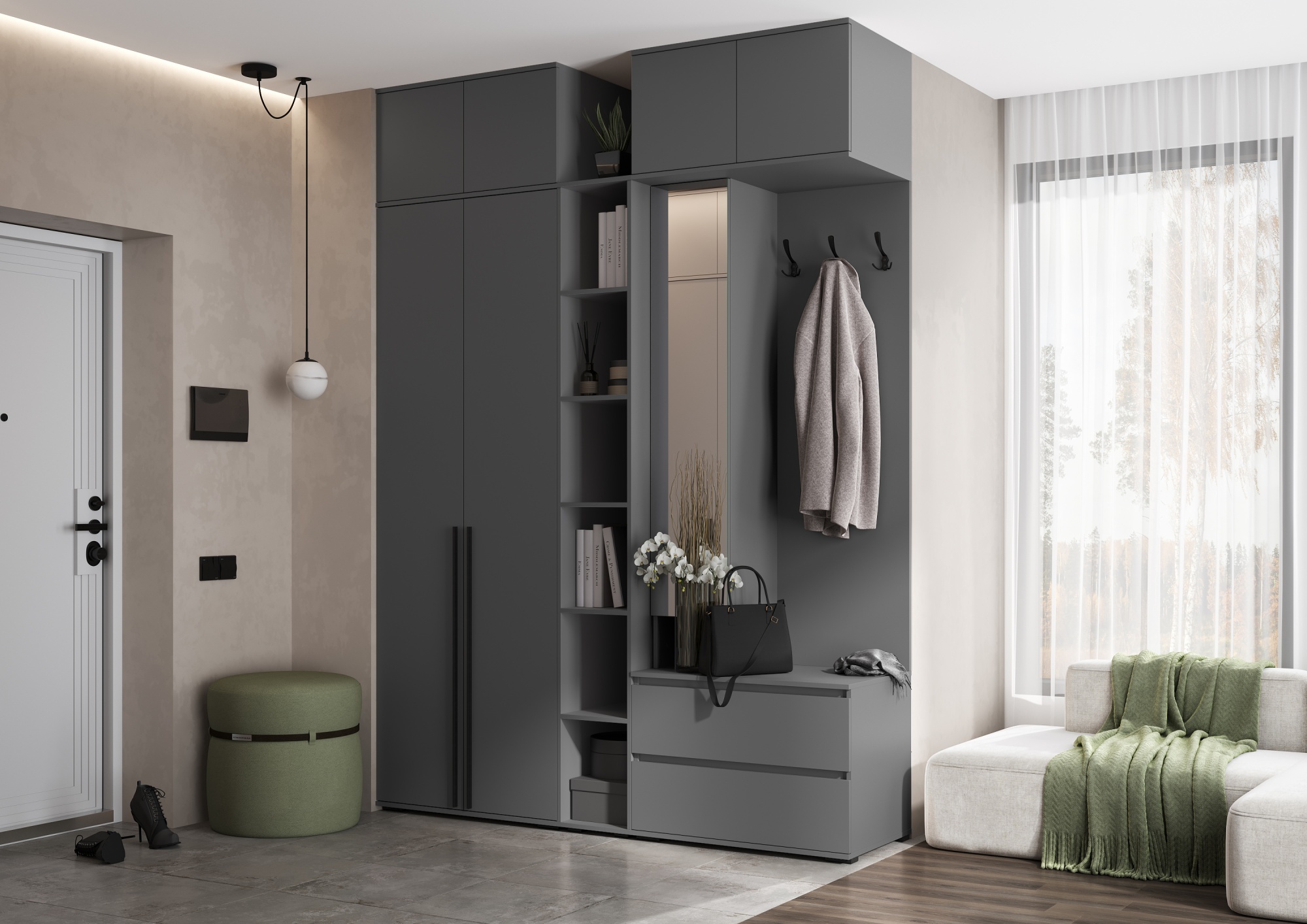 Прихожая "Норд" обеспечит удобное хранение вещей и визуально расширит пространство прихожей.