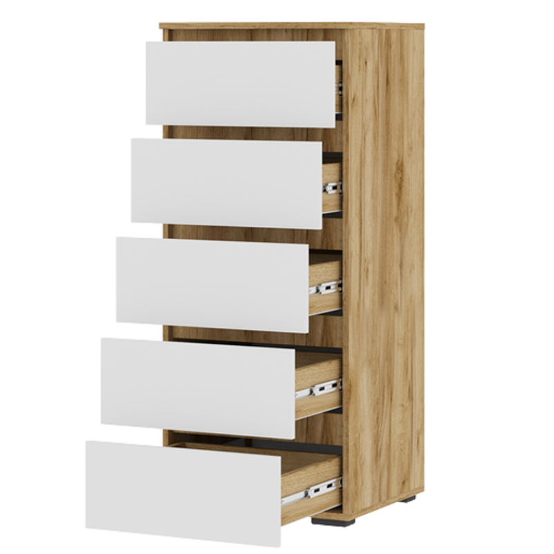 - Комод имеет пять вместительных ящиков для хранения различных предметов.