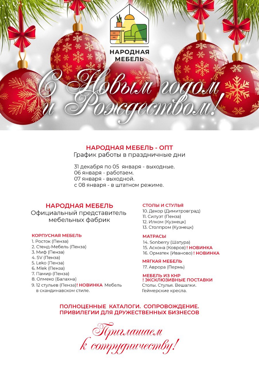 Пусть в Новом году ваш дом наполнится теплом, уютом и комфортом! "Народная мебель" желает вам счастливых праздников, исполнения желаний и, конечно же, уютного, обновленного интерьера! С наступающим!